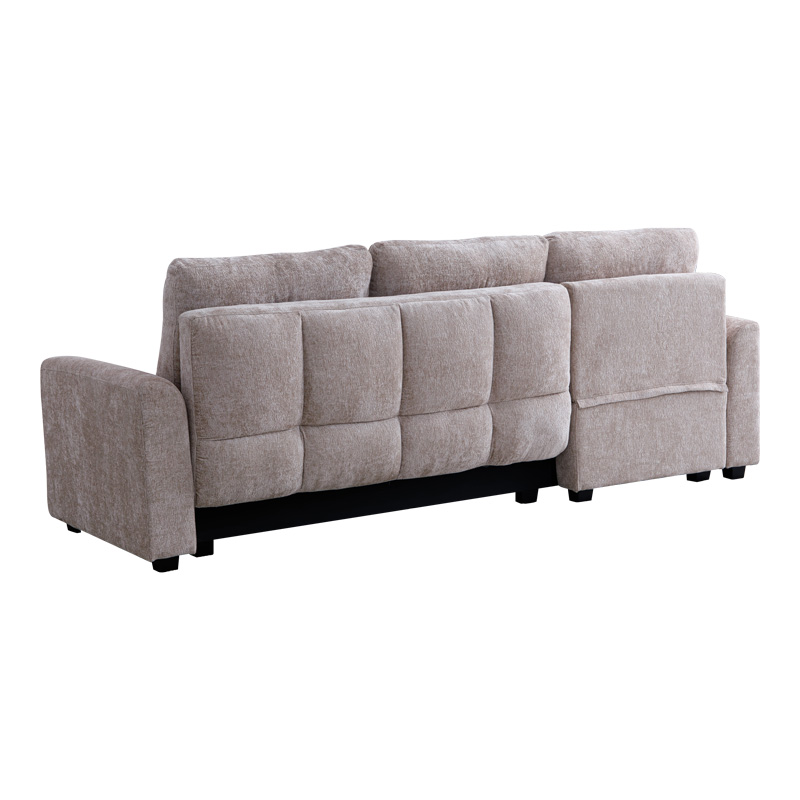 Комфорна аголна реверзибилна тросед на развлекување со простор за складирање, беж ткаенина 267x159x97 см