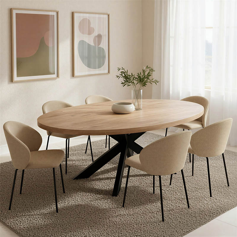 - Sturdy Construction: The robust metal base in a star-shaped design not only ensures complete stability but also adds a modern, industrial touch that complements the wood beautifully.