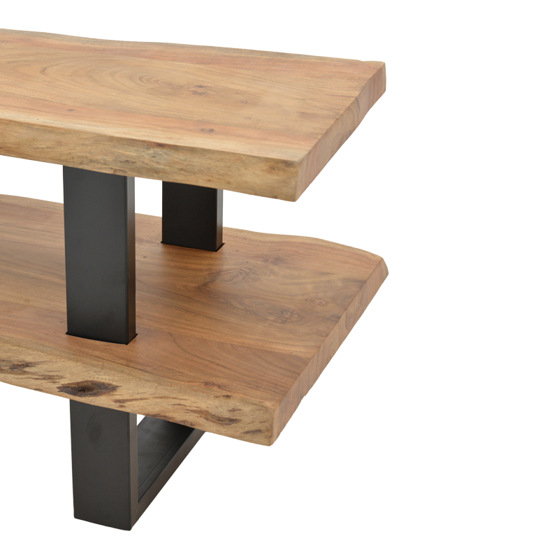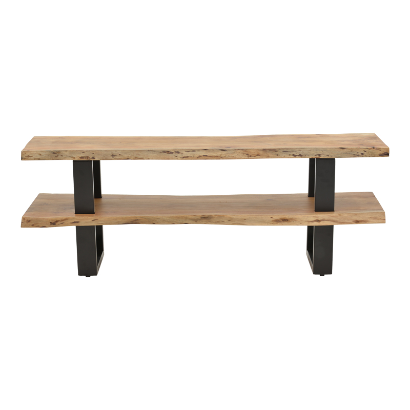 Fuji TV cabinet, solid acacia wood in a natural shade with black metal legs 140x40x52cm