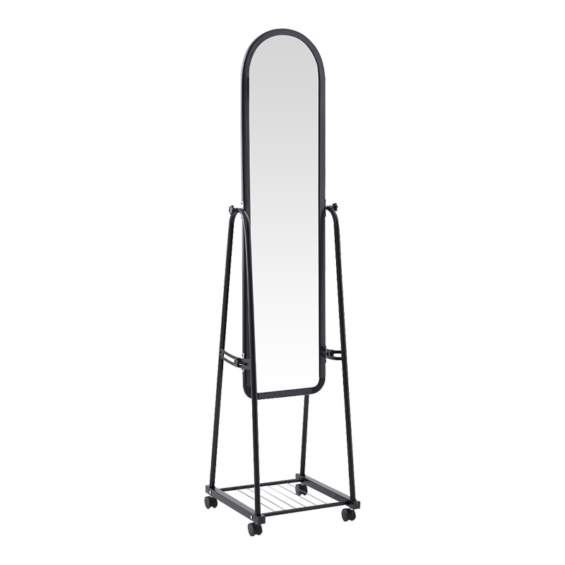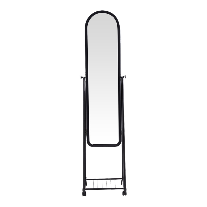 Lomna pp-metal wheeled mirror with shelf in black shade 38.5×37.5x160cm