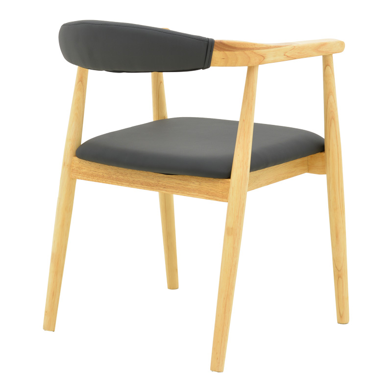 Фотелја од гумено дрво Санди во природна нијанса со црна PU перница 50x60x80 см