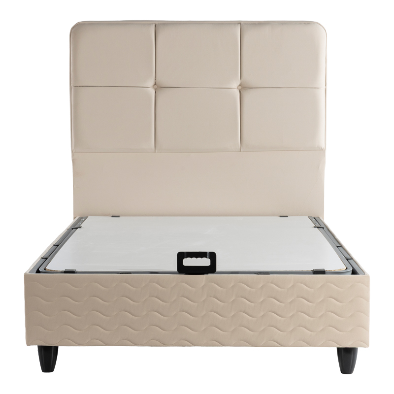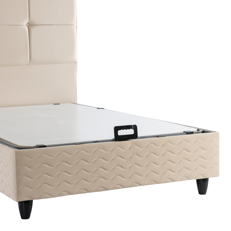 Semi-Double bed Punto with storage space cream velvet 120x200cm
