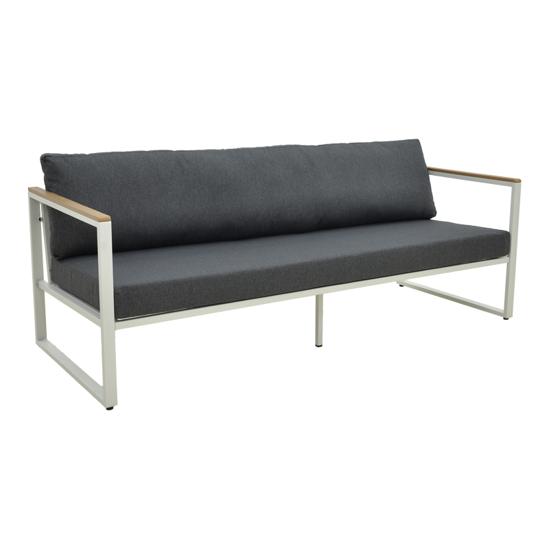 Upgrade your indoor or outdoor space with the Aurelio 3-Seater Sofa. Featuring a sturdy steel frame and sleek, modern lines, it combines style, comfort, and long-lasting durability. The armrests with plywood accents add a natural touch, while the plush cushions ensure a premium seating experience.