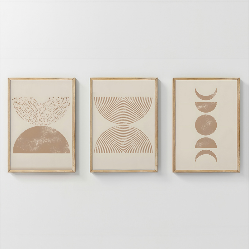 Bring refined geometry and astronomical symbolism into your space with a perfectly neutral and serene palette. The Klipen triptych is an aesthetic statement consisting of three distinct, interacting pieces. This three-part arrangement imparts calmness, elegance, and timeless style.
