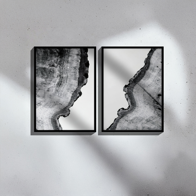 Discover art that exudes natural strength and timeless elegance. The Nepen I diptych is not just decoration; it is a primal aesthetic statement that represents the textures of the Earth, like the interior of a mineral or a tree. Every time your gaze focuses on the fluid, organic curves and the deep, shadowed details, you feel a sense of mental calm and absolute refinement. The artwork symbolizes the power of nature, timeless value, and the charm of simplicity. It is a visual reminder that Black & White minimalism can be deeply expressive.