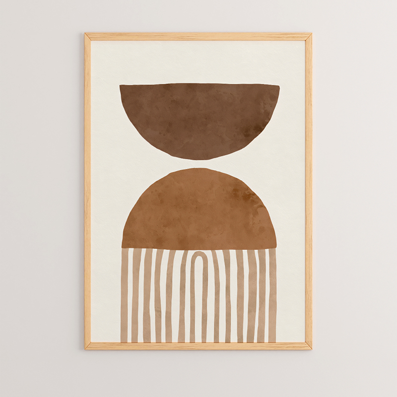 This geometric wall art makes a modern and elegant addition to any space. The composition of organic shapes and earthy tones creates a sense of calm and balance. It is the perfect piece to enhance the aesthetic of your living room, bedroom, or even office. A minimalist yet striking statement of style, it complements any contemporary décor.
