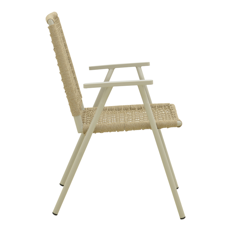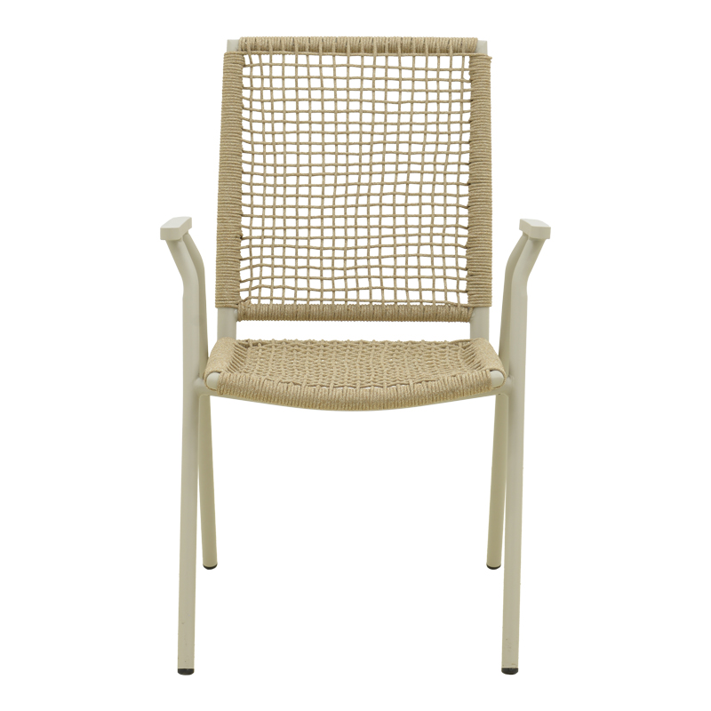 Weave stackable armchair, aluminum in beige -pe rope in natural shade 57x63x86cm