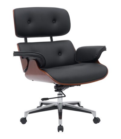 Менаџерска канцелариска столица Кобане црна PU-хромирана основа 84x75x113.5 см