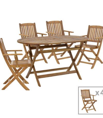 Комплет трпезариски маси Recofly-Falov од 5 природни масивни акации 130x80x72 см