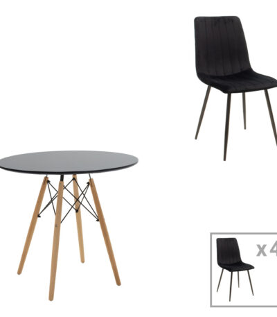 Комплет трпезариски маси Julita-Noor од 5 парчиња МДФ црни-природни ногарки Φ80x73 см