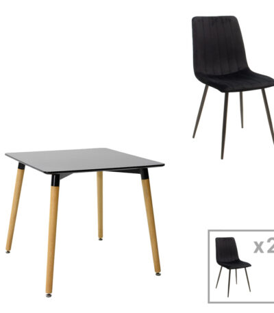 Комплет трпезариски маси Natali-Noor од 3 парчиња МДФ црно-природни ногарки 80x80x73 см