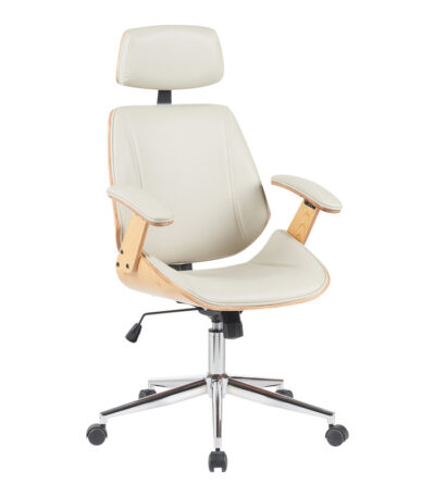Fetseno director’s office chair beige pu-chrome base 53x56x113.5-123.5cm