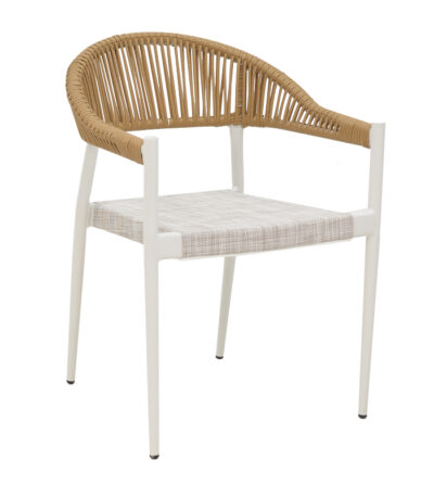 Elation aluminum armchair stackable white frame-textilene natural rattan 56x52x76cm