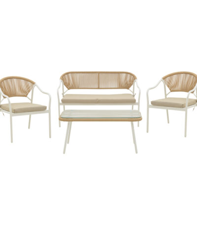 Lounge Bonanza set 4pcs beige rattan-aluminium white