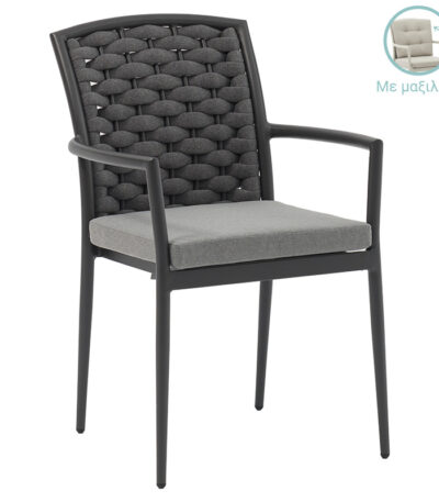Armchair Moritz aluminum anthracite rope-grey cushion