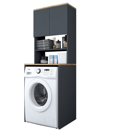 Laundry cabinet Rasmus anthracite-natural 65x60x183.6cm