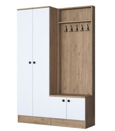 Entrance furniture Nafdo walnut-white melamine 119.6×35.5×182.8cm