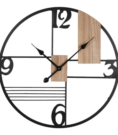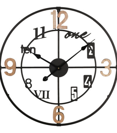 Wall clock Paul black-natural metal-mdf D57x6cm