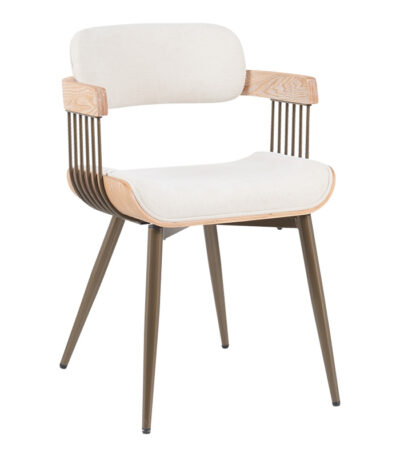 Armchair Cameo metal bronze-white-wash wood-beige fabric 53×49.5×75.5cm