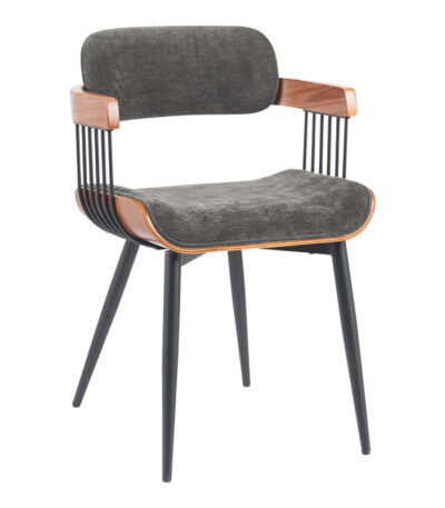 Armchair Cameo metal black-walnut wood-dark grey fabric 53×49.5×75.5cm