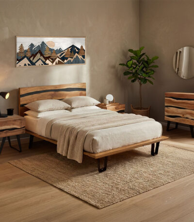 Imena Cabinet solid Acacia wood in natural shade with black metal legs 148×43.5x86cm