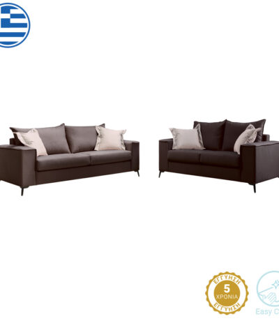 Verona 2 pieces sofa set mocha fabric with cream colored cushions