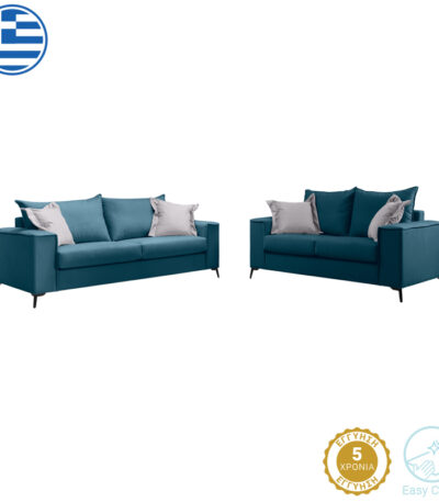 Verona 2 pieces sofa set blue fabric with light grey-colored cushions