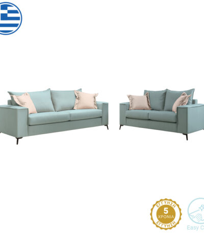 Verona 2 pieces sofa set mint fabric with cream colored cushions