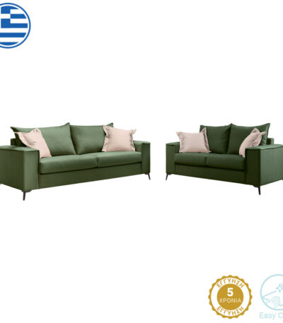 Verona 2 pieces sofa set dark green fabric with cream colored cushions