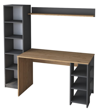 Work desk-shelf unit Goldie anthracite-natural 160x50x161.8cm