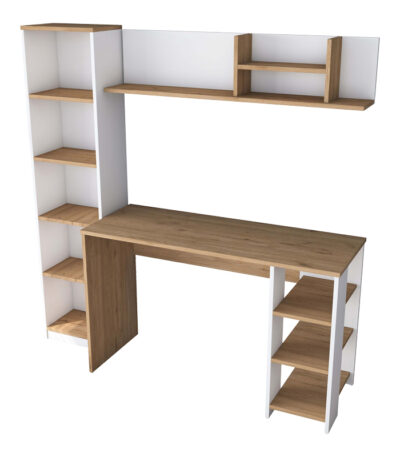 Work desk-bookcase Scarlet in sonoma-white color 161x60x150cm