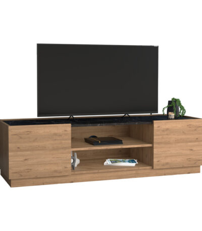 Betna TV cabinet in walnut color with black marble finish 150x42x48cm