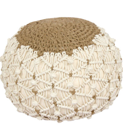 Boha Inart jute stool-pouf in natural and white shade D40x30cm