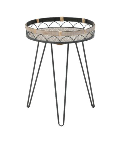 Coffe table Erzmo Inart natural-black metal-wood D40x56cm