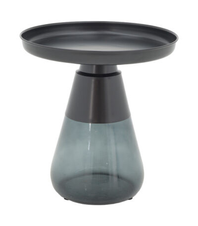 Coffee table Kunlo Inart black metal-black glass D50x53.5cm