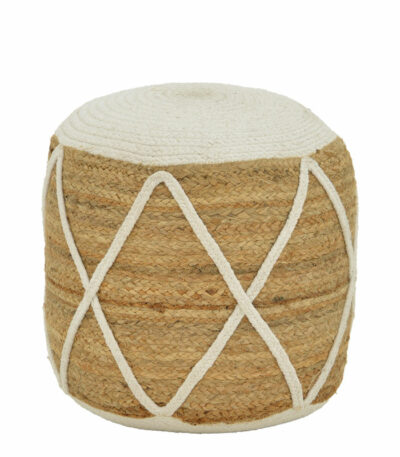 Maroc Inart jute stool-pouf in natural and white shade D40x45cm