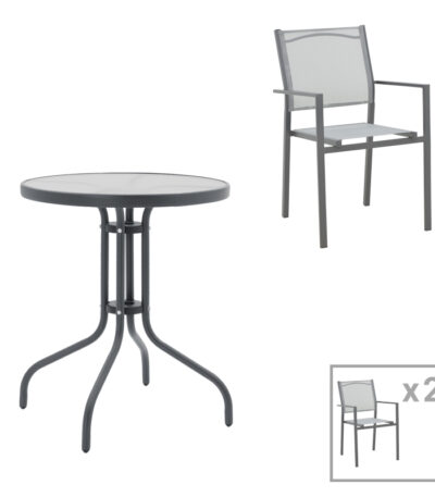 Dining table Watson-Confidence set of 3 metal in charcoal shade 70x70x70cm