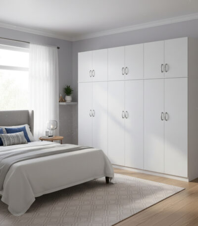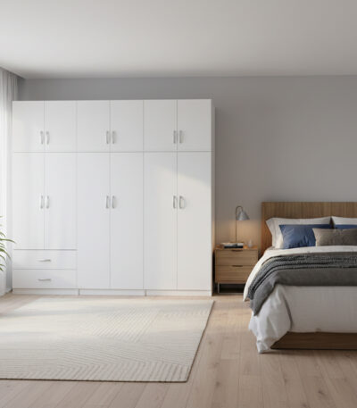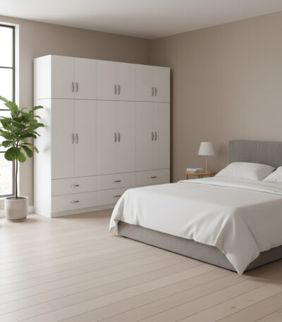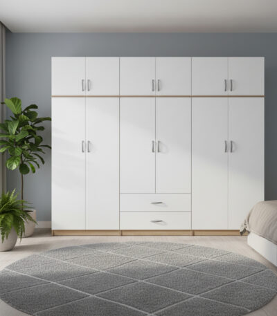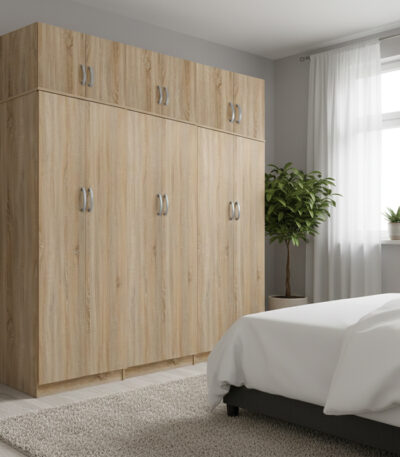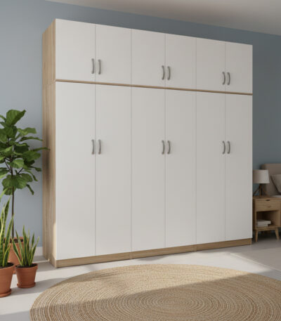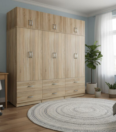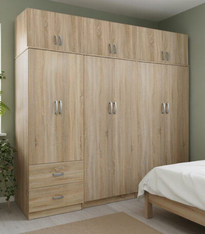 Six-door wardrobe with drawers and loft Athos sonoma-white 240x42x240cm