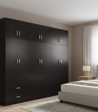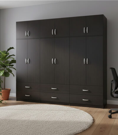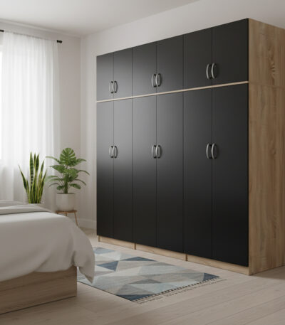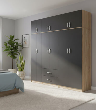 Six-door wardrobe with drawers and loft Athos sonoma-ανθρακί 240x42x240cm