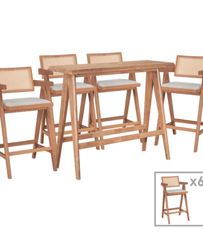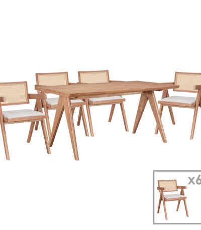 Dining set Winslow Ι set 7pieces rubberwood light walnut 120x45x100cm