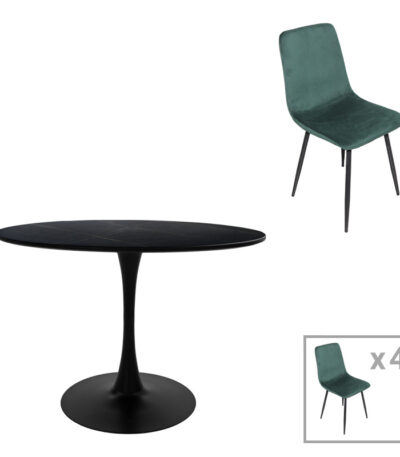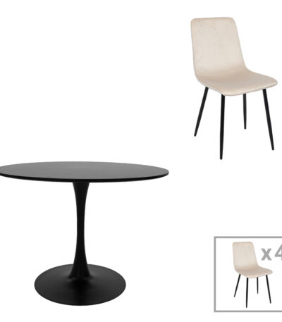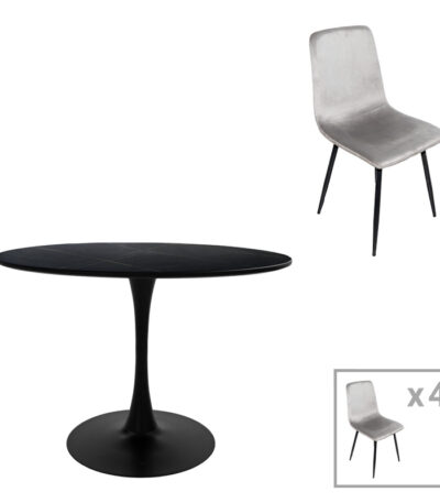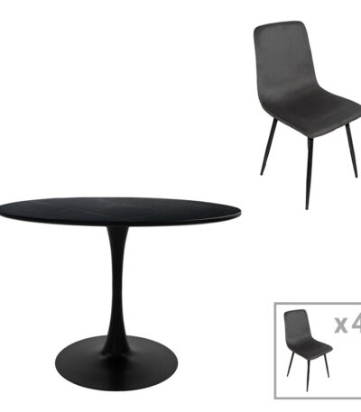 Dining table Balou-Maley set of 5 pcs MDF black-velvet anthracite D120x73cm