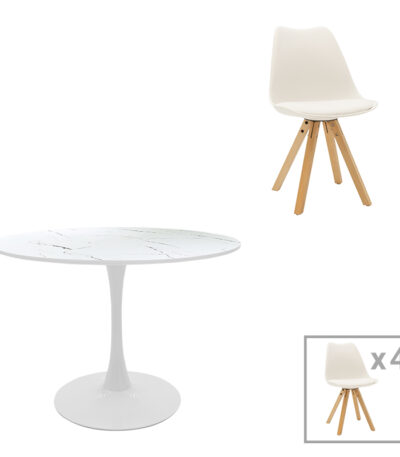 Dining table Balou-Caron set of 5 pcs pp-mdf in white-natural shade D100x73cm