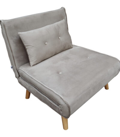 Josuane armchair-bed gray velvet and natural wood leg 77x80x81cm