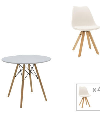 Julita-Caron dining table set of 5 white MDF-natural legs Φ80x73cm