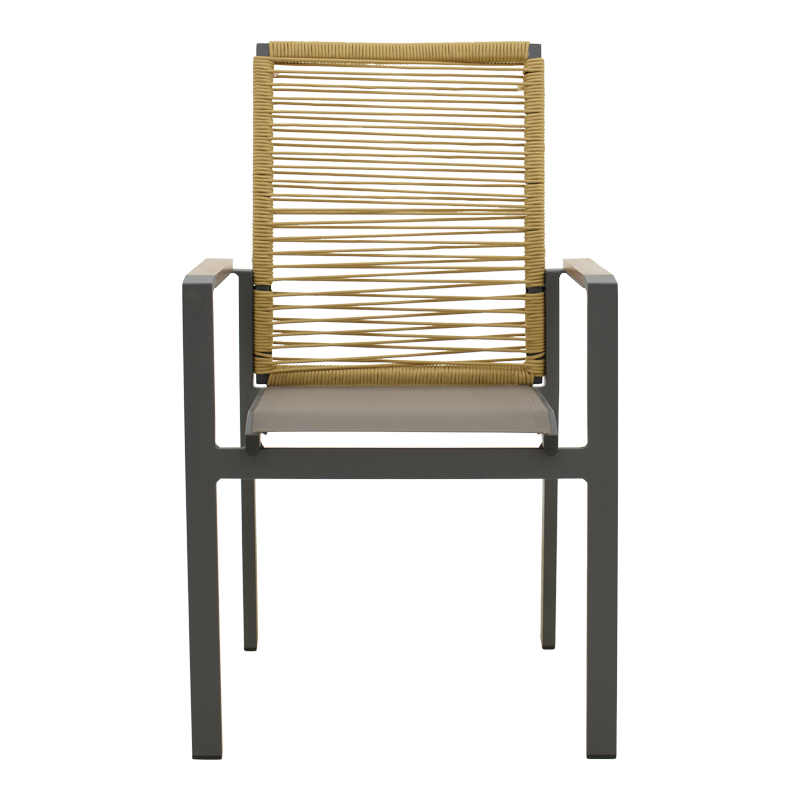Aegean stackable armchair teak-pe rope in natural – aluminum & textline in anthracite shade 56.5x58x91cm