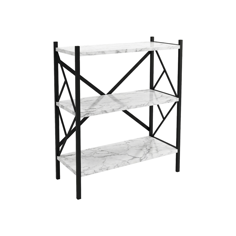Althea freestanding shelf marble white with black metal 60x30x90cm