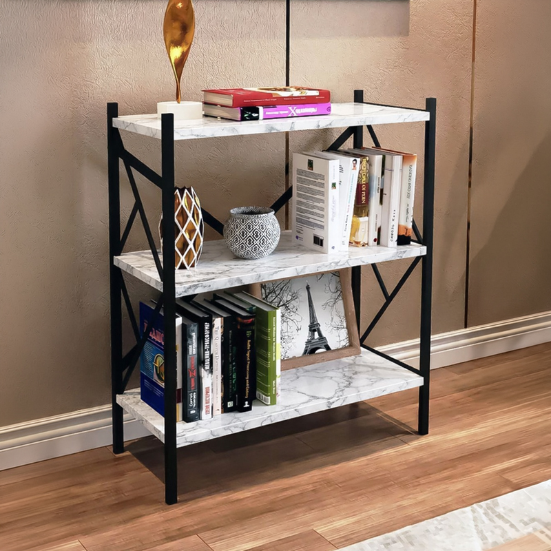 - Features three levels, ideal for books, small items, and creating decorative displays.