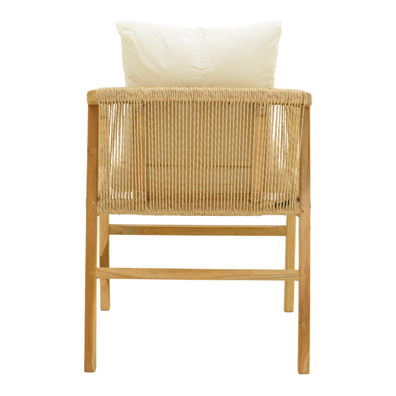 Upgrade your space with the refined Cuerda armchair, which seamlessly combines the durability of teak wood with the soft feel of woven rope.