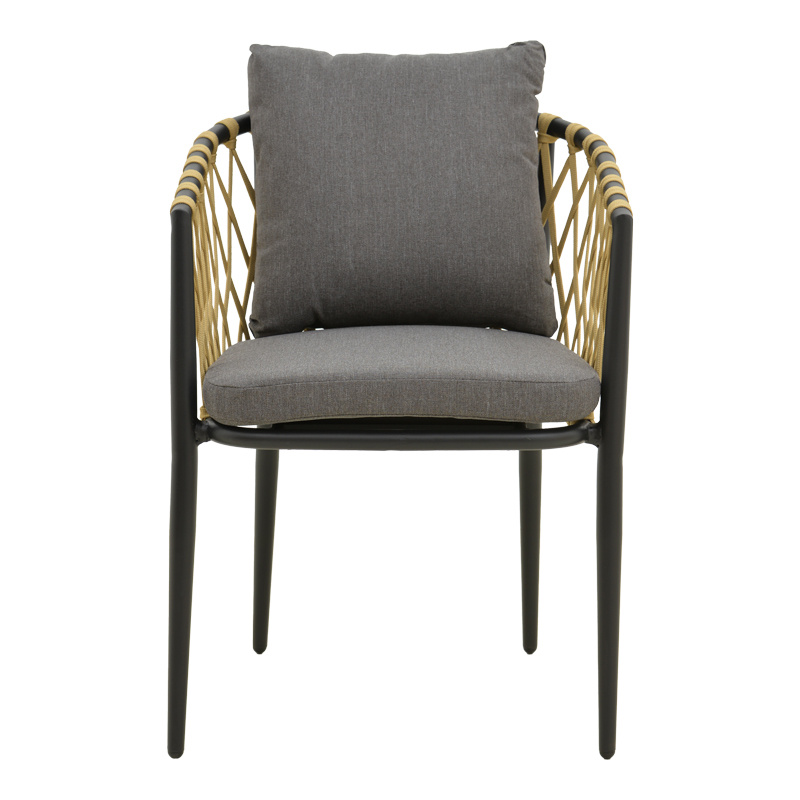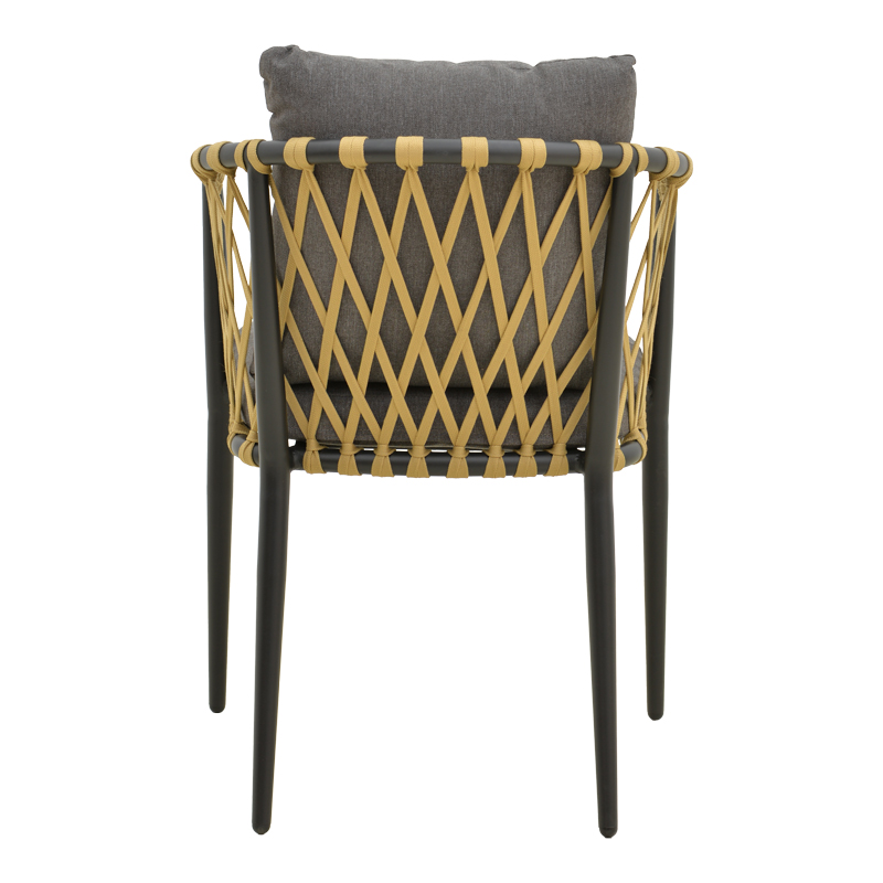 Armchair Peluxe aluminum anthracite-pe rope natural-grey cushions 54x62x84cm