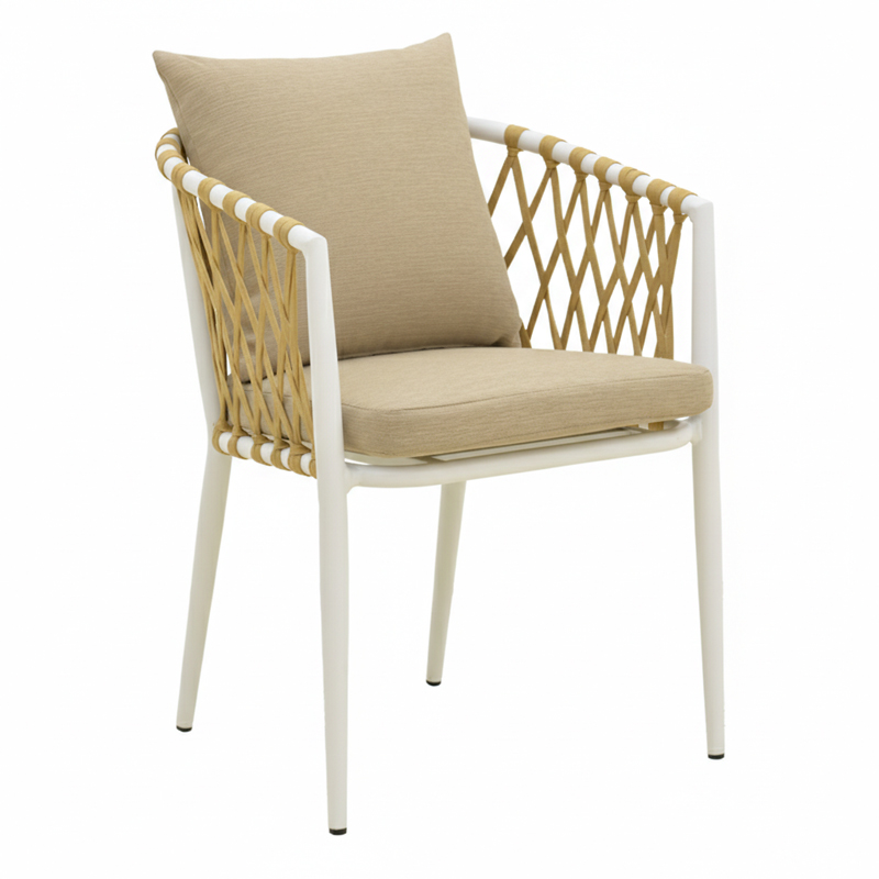 Revitalize your space with the elegant Peluxe armchair, combining modern design with exceptional comfort. Featuring a durable charcoal-colored aluminum frame and a natural-toned rope weave, it offers a unique character and sturdy construction.